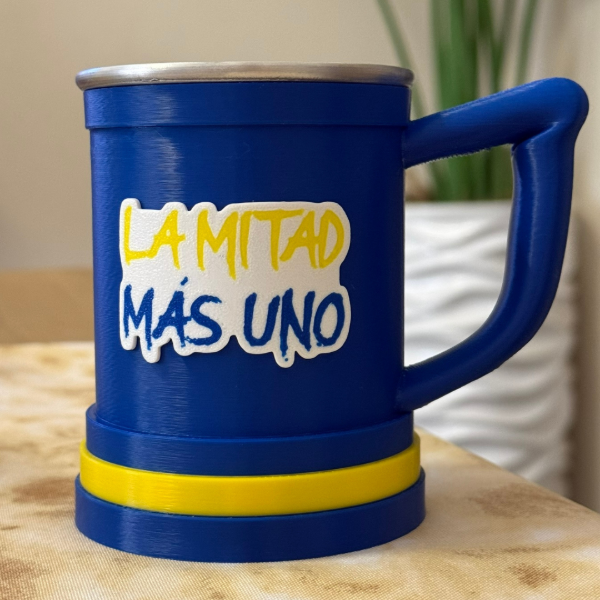 Se puede personalizar con cualquier logo, equipo, número o diseño, ya sea de fútbol, básquet u otra disciplina. Está fabricado de plástico por fuera y cuenta con interior de aluminio, que ayuda a mantener la bebida fría por más tiempo.